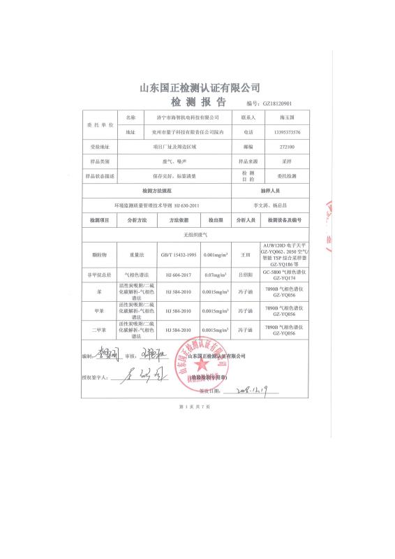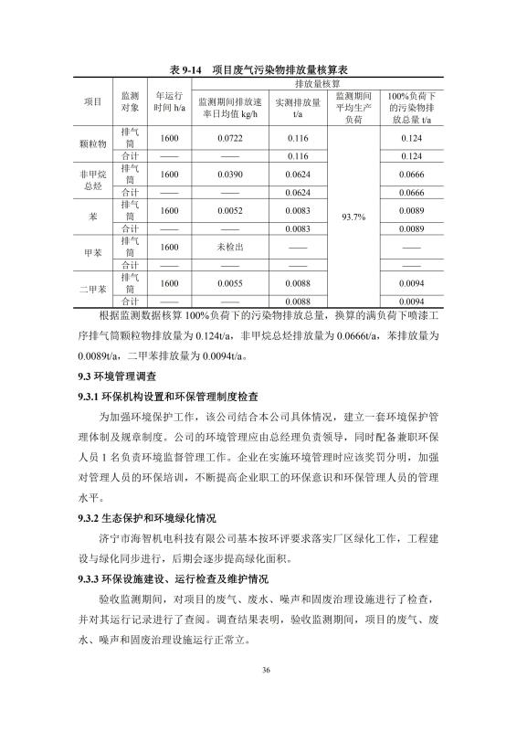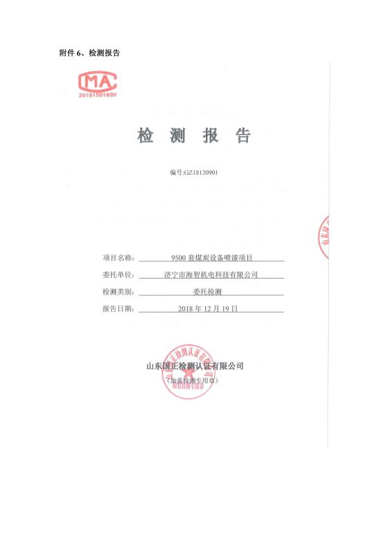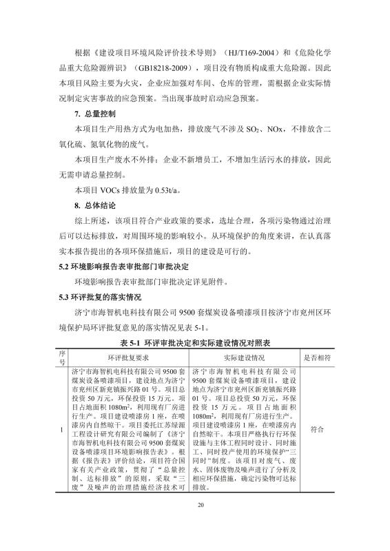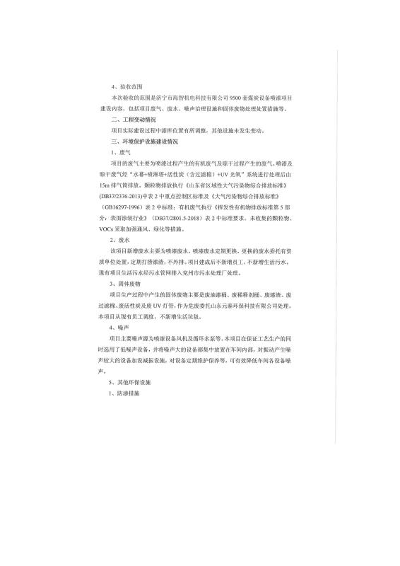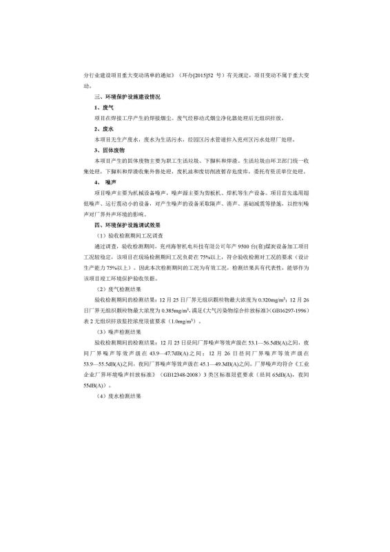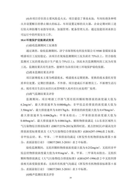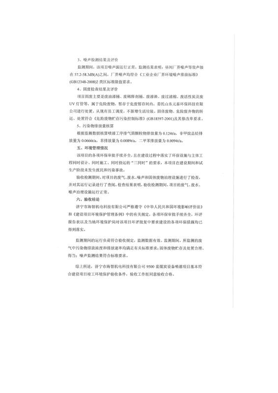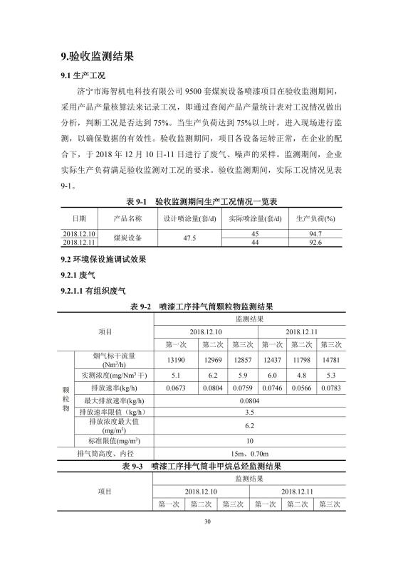 9500套煤炭設備噴漆項目竣工環(huán)境保護驗收監(jiān)測報告