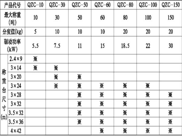 QZC系列稱板移動精準(zhǔn)快速裝汽車系統(tǒng)技術(shù)參數(shù)表: