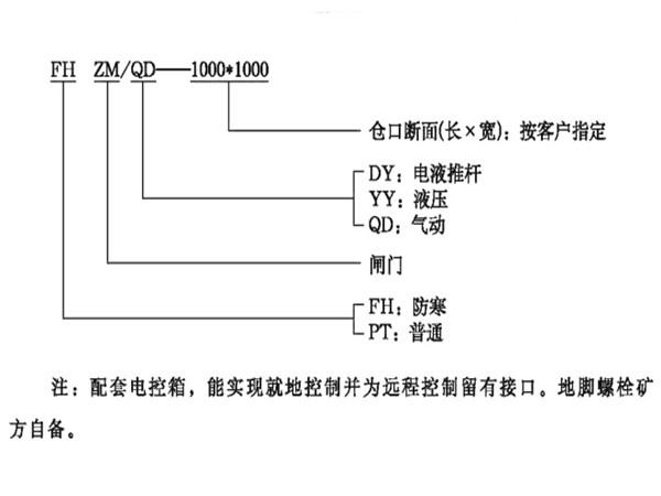 防寒型防竄倉(cāng)無(wú)撒料成套裝車(chē)閘門(mén)型號(hào)說(shuō)明: