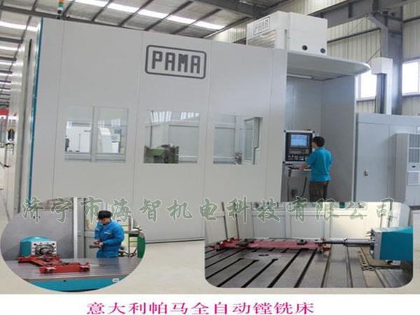 PAMA 工作臺(tái)式鏜銑加工中心,型號(hào)SPEEDMAT 3000 130 TR16,本機(jī)床為意大利PAMA品牌,鏜軸直徑φ130mm,主軸箱垂直行程2500mm,工作臺(tái)水平行程3000mm,立柱行程2300mm,鏜軸行程800mm,回轉(zhuǎn)工作臺(tái)尺寸1800 x 2200mm, 承重16t,工件最大回轉(zhuǎn)直徑3000mm,(X,Y,Z,W)軸加工進(jìn)給速度0.5 ~ 15000 mm/min。